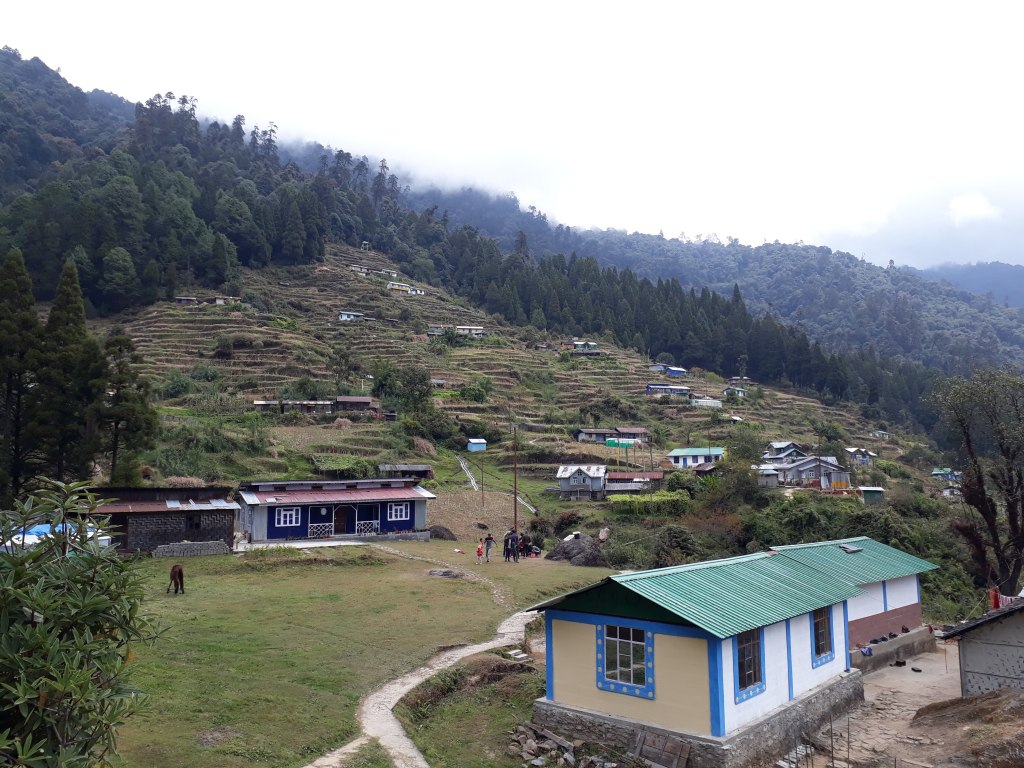 Non stop downhill had exhausted a lot of us. I was eagerly waiting for a glimpse of Gorkhey as I had painted some picture of this village. I had read earlier that this was one of the beautiful villages of Sandakphu trek.