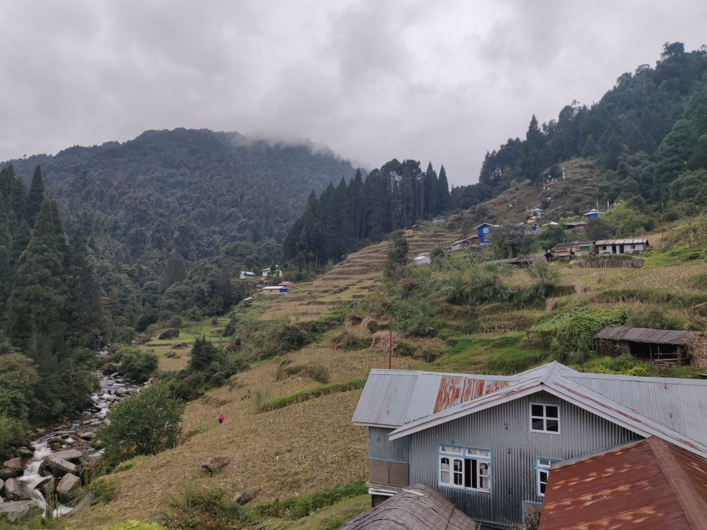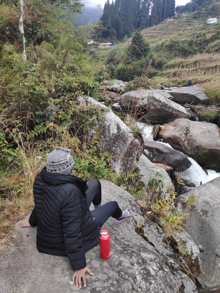 Gorkhey was soothing. It reminded me of the scenery I tried to draw in school. Cascaded mountains, flowing river, shotgun and farm houses, farm animals. In Grokhey many of us calmed ourselves on the boulders near the flowing Ramam river. Evening in Gorkhey was quite emotional as we shared notes of gratitude to each other, no tabs were kept on the clock. Two of our trek mates had birthday and a very cute cake was baked with best possible ingredients available. It had been a long time I had felt so good among so many people. The speeches from each one of us will always remain with me forever.