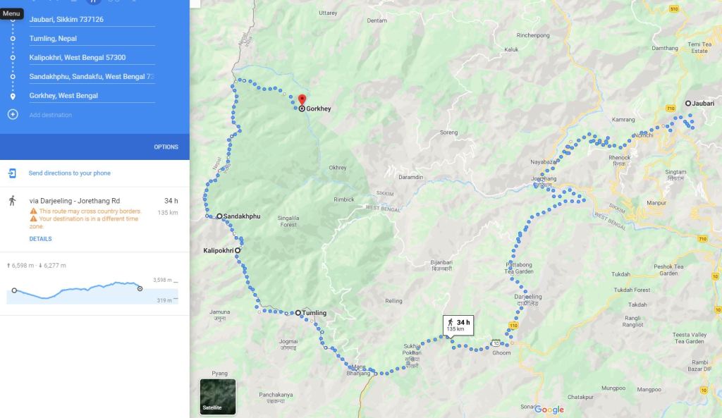 Day 4 Sandakphu to Sabargram Altitude Change from 11,950 ft (3,642 m) to 11,807 ft (3,599 m) Distance 12-13 km
